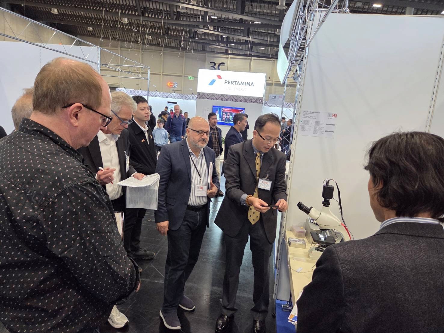 中原大學林政鞍(左)參加紐倫堡國際發明展競賽,介紹首度公開亮相之「可視化奈米顯微鏡」專利技術,贏得讚賞。
